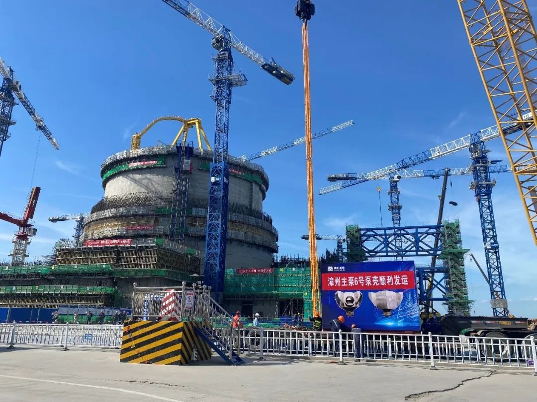 2022年8月21日,中核工程總包的漳州核電項目主泵6號泵殼(即2號機組第3臺)如期運抵漳州現場,并于8月22日完成吊裝引入核島,本次是主泵設備交付歷史上首次引入GPS定位裝置,實現了設備運輸的全過程跟蹤,一步到位、引入核島。至此,漳州項目主泵泵殼全部到貨,2號機組“穹頂吊裝”的重大工程節點的前置條件完全具備,滿足“開頂法”施工需求!