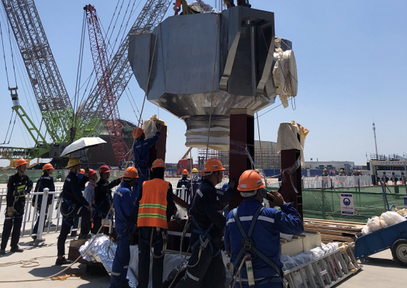 漳州核電2號機(jī)組首臺主泵泵殼順利吊裝就位