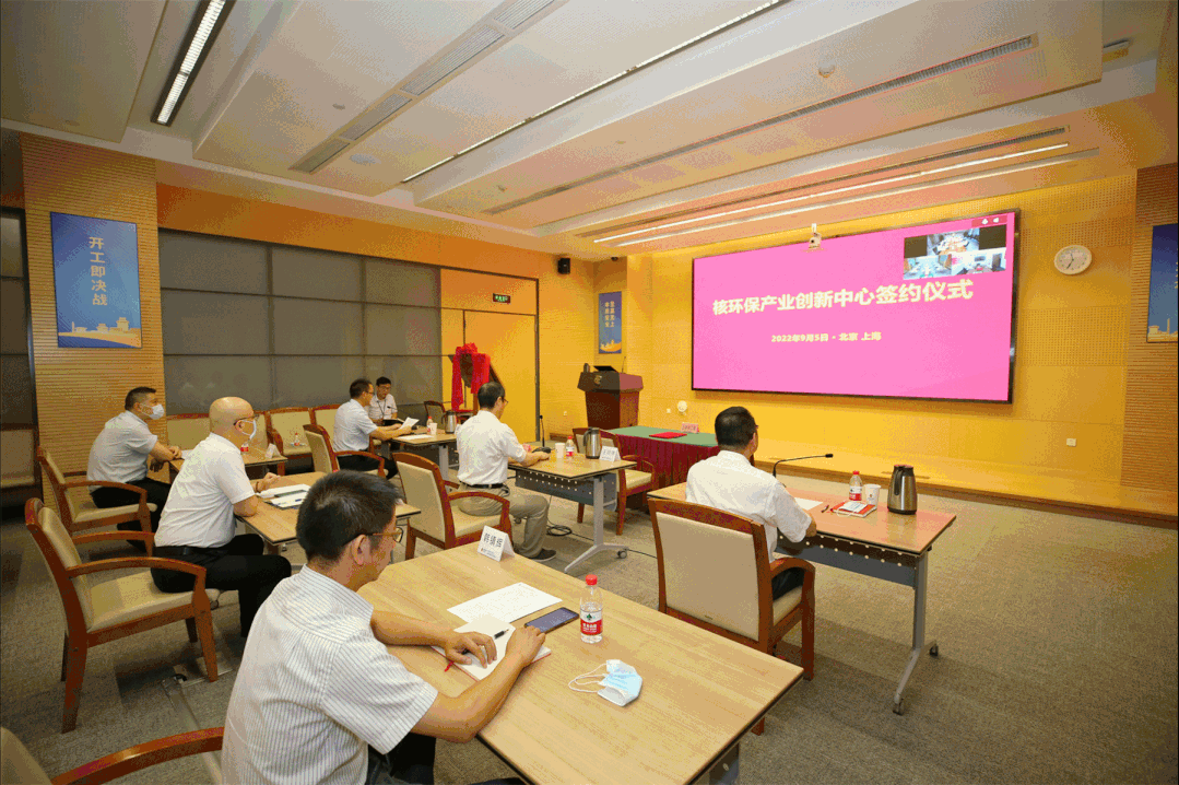 2022年9月5日,上海核工院和國核鈾業采用云簽約方式,舉行核環保產業創新中心簽約及揭牌儀式。上海核工院總經理王明彈,上海核工院黨委副書記、副總經理、核能產業創新中心主任顏巖,核能產業創新中心副主任陳煜,國核鈾業黨委書記、董事長王曉航,副總經理張俊新,副總監史寶義等出席儀式。