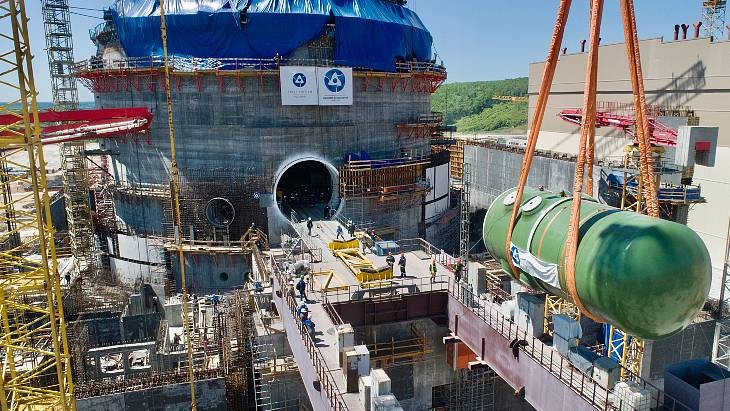 Rosatom表示,這個重達340噸、長12米的VVER-TOI反應堆容器由無鎳鋼制成,設計用于承受250個大氣壓的壓力,相當于海洋中2.5公里深處的壓力。它被分幾個階段安裝在俄羅斯西部庫爾斯克二期的第一個動力裝置的最終位置。
