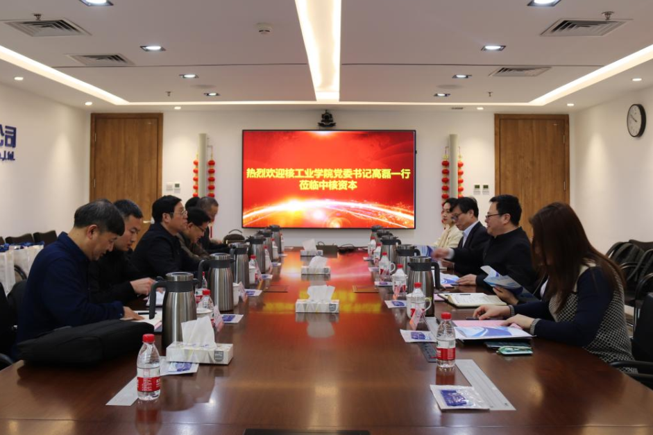 1月18日,中核資本黨委書記、董事長肖亞飛,副總經理潘炳超與來訪的核工業學院黨委書記高磊,黨委委員、副院長朱向軍一行進行座談交流。
