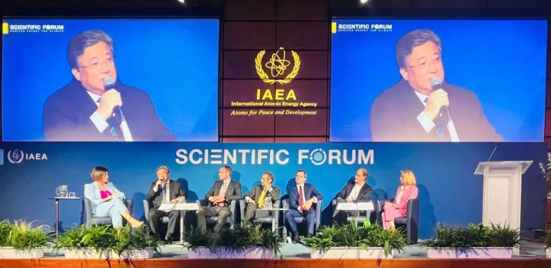維也納當地時間9月27日,在國際原子能機構(IAEA)第67屆大會召開期間,中核集團董事長余劍鋒出席國際原子能機構“核能創新促進凈零排放”主題科學論壇閉幕式,向各國同行分享中國經驗和中國觀點,共同探討核能創新發展與應對氣候變化挑戰的有關話題。