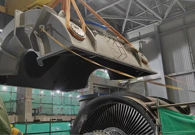 2025年1月17日4時28分,隨著常規島主行車鉤頭緩緩落下,汽輪機低壓外缸穩穩就位、扣合,至此全球首堆“玲龍一號”常規島汽輪機扣蓋節點圓滿完成。