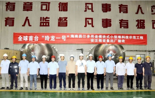 7月27日,西核設備有限公司承制的全球首個陸上商用模塊式小堆玲龍一號首臺主設備安注箱,順利通過海南核電有限公司、中國核電工程有限公司、中國核動力研究設計院三家單位專家的出廠驗收,即將發運工程項目現場。