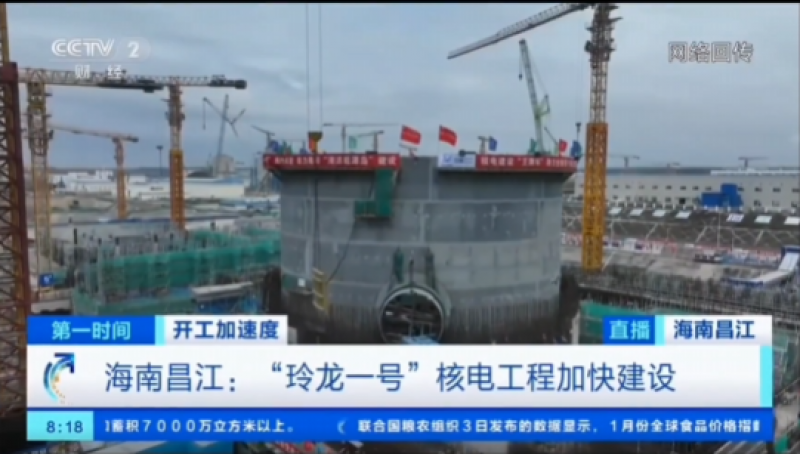 2月4日上午,央視財經頻道CCTV—2 《開工加速度》欄目直播報道了中核二二承建的海南昌江“玲龍一號”全球首堆熱火朝天的建設場景。