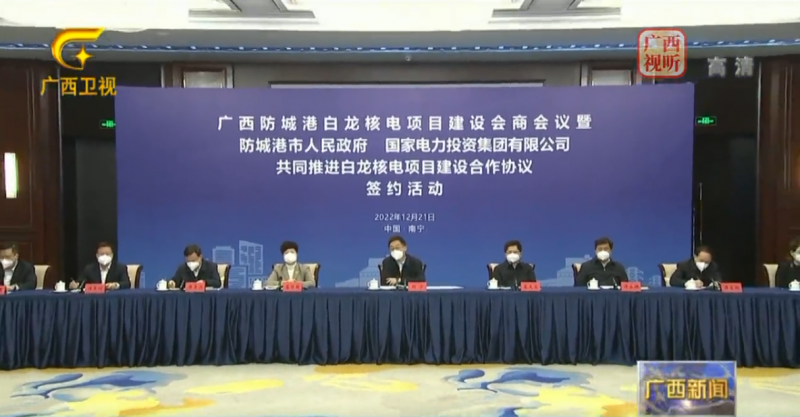 12月21日,廣西與國家電力投資集團有限公司以“云會面”方式,舉行防城港白龍核電項目建設會商會議暨《防城港市人民政府 國家電力投資集團有限公司共同推進白龍核電項目建設合作協議》簽約活動。自治區黨委書記、自治區人大常委會主任劉寧,自治區黨委副書記、自治區主席藍天立,國家電投黨組書記、董事長錢智民出席會議并見證簽約。