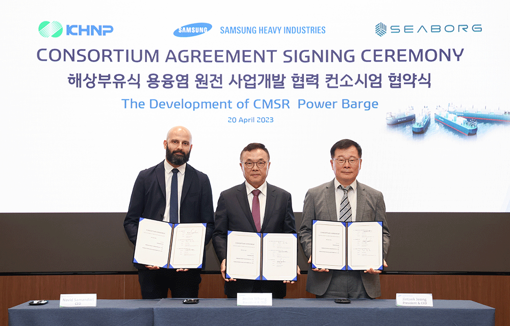 韓國造船商三星重工(SHI)、韓國水電核電公司(KHNP)和丹麥公司Seaborg Technologies周五(4月21日)宣布成立一個財團,開發使用緊湊型熔鹽反應堆(CMSR)浮動核電站并將其商業化。這三家公司將使用CMSR實現200兆瓦容量核電站的商業應用作為他們的第一個目標。
