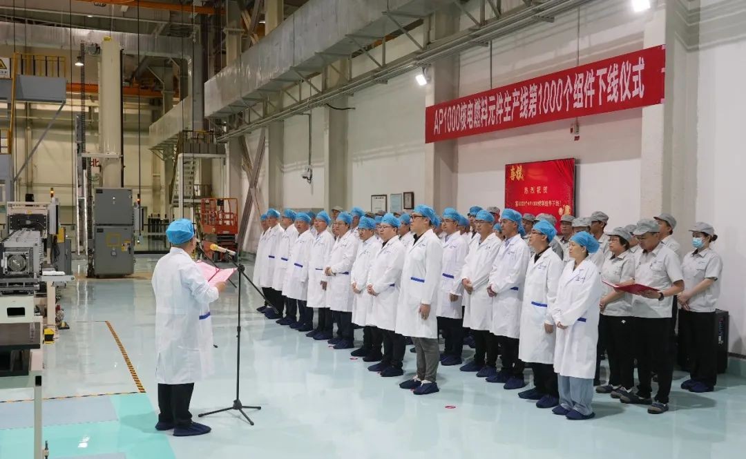 6月15日上午,第1000組AP1000核電燃料組件在國內首條AP1000核電燃料元件生產線下線。