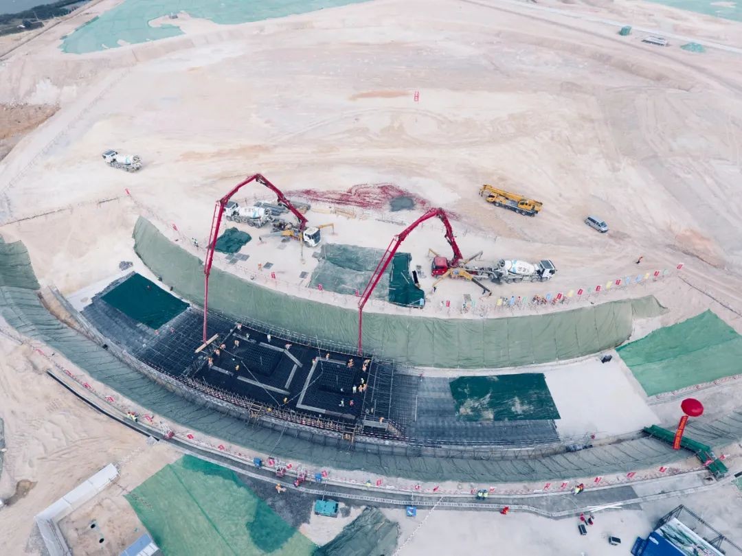 8月15日,1號機(jī)組現(xiàn)場機(jī)器轟鳴、吊臂起降、一片繁忙。15時整,隨著一聲令下,混凝土澆筑正式啟動,1號常規(guī)島順利實現(xiàn)第一罐混凝土澆筑(FCD)目標(biāo)。