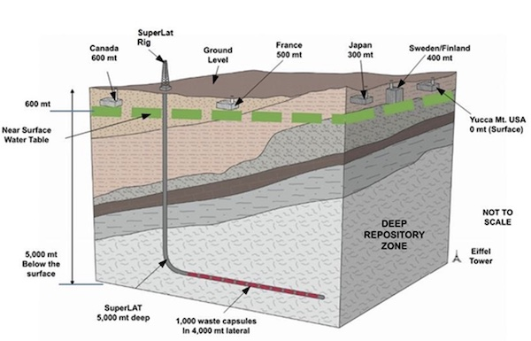 傳統觀點認為,核廢料應該在地下幾百米以內的深層地質儲存庫中處理。石油和天然氣行業率先采用并現已掌握的深層定向鉆井技術是一種替代解決方案