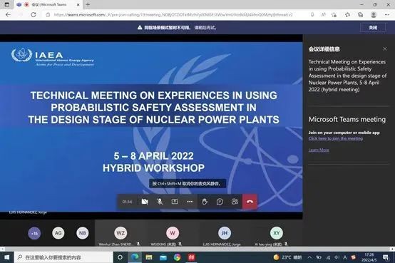 2022年4月5-8日,國際原子能機構(IAEA)在奧地利舉辦核電廠概率安全分析(PSA)應用的技術交流會,來自世界各地的成員國代表以現場或網絡視頻的形式參加了本次會議。受國家原子能機構邀請并根據國家核安全局工作要求,中心反應堆與安全分析部以視頻形式參會并做大會報告。