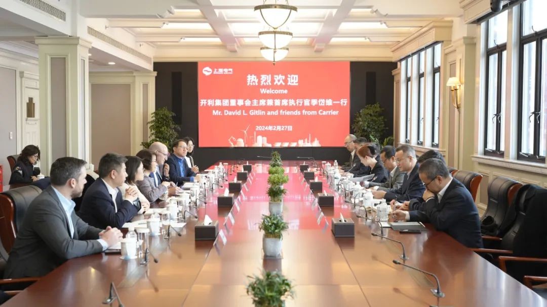 2月27日下午,開利集團董事會主席兼首席執行官季岱維(David L.Gitlin)一行來訪上海電氣,與上海電氣集團黨委副書記、總裁劉平舉行會談,雙方就進一步深化戰略合作、拓展合作領域達成共識。