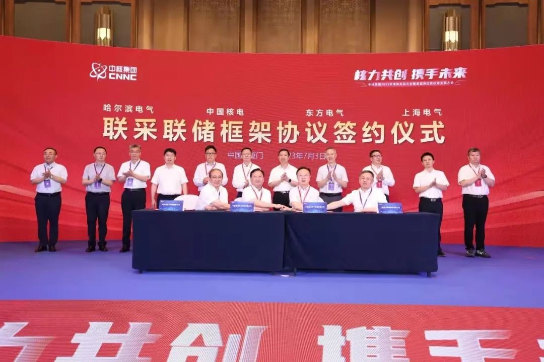 7月3日,以“核力共創 攜手未來”為主題的中核集團2023年度供應商大會暨首屆供應鏈伙伴發展大會在福建廈門舉辦。會上,上海電氣電站集團代表上海電氣,與中核集團簽署了聯采聯儲框架協議。