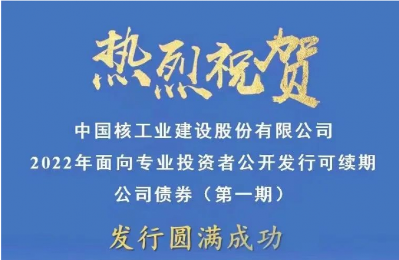 4月19日,中國核建成功發行2022年第一期可續期公司債券。本次發行募集資金20億元,期限3+N年,發行利率為3.15%,資金用途主要用于置換高息貸款。