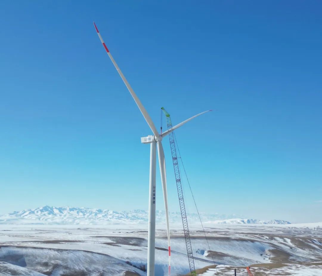 中核集團首個百萬千瓦風電源網荷儲一體化項目順利完成首臺風力發電機組吊裝