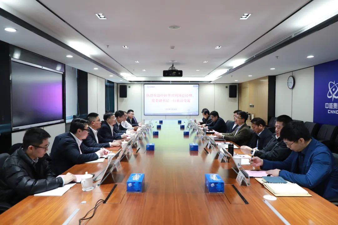 2月20日,中核環保黨委書記、董事長吳秀江,總經理、黨委副書記趙翼鑫在中核100號與中核華興黨委副書記、總經理周博一行座談,雙方就加強產業布局合作、推動高質量發展進行了交流。