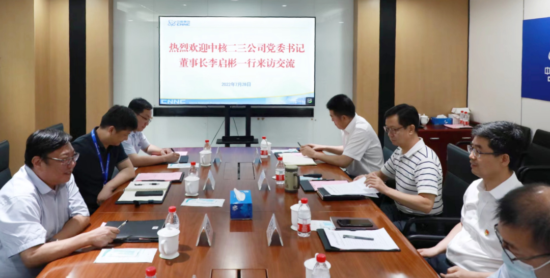 7月29日,中核環保黨委書記、董事長吳秀江在中核100號會見了中國核工業華興建設有限公司(以下簡稱中核華興)黨委書記、董事長張仕兵一行,雙方就后續合作方向和思路進行了深入交流。