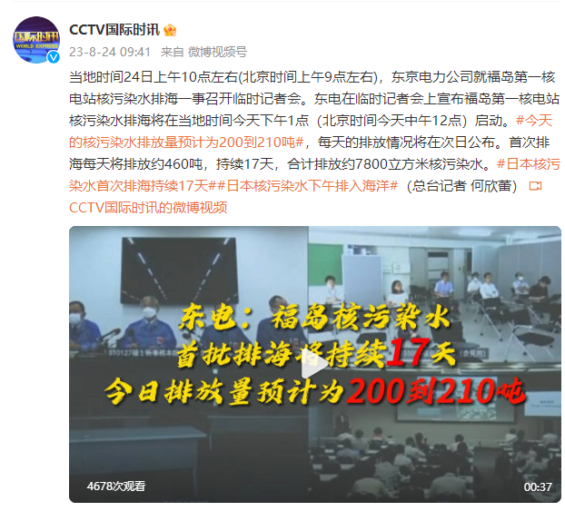 當地時間8月24日13時,日本福島第一核電站啟動核污染水排海。