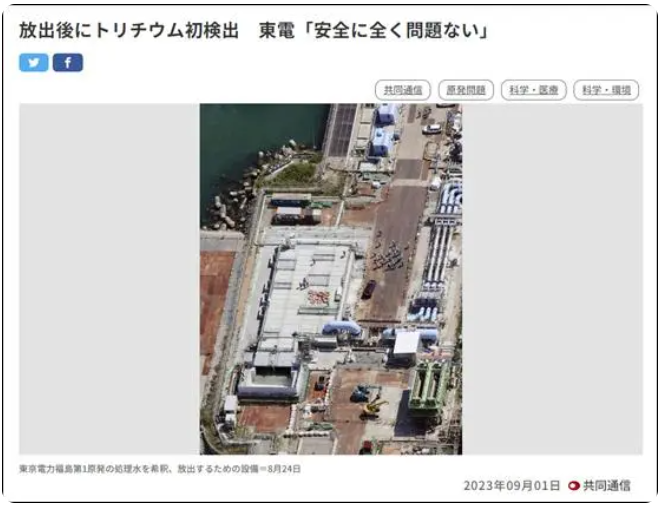 日本東京電力公司1日發布消息稱,自福島核污染水排海后,日本方面在8月31日于排放口附近取樣的海水中首次檢測出放射性物質氚。不過,東電在通報中聲稱,氚濃度“在安全上完全沒有問題”。