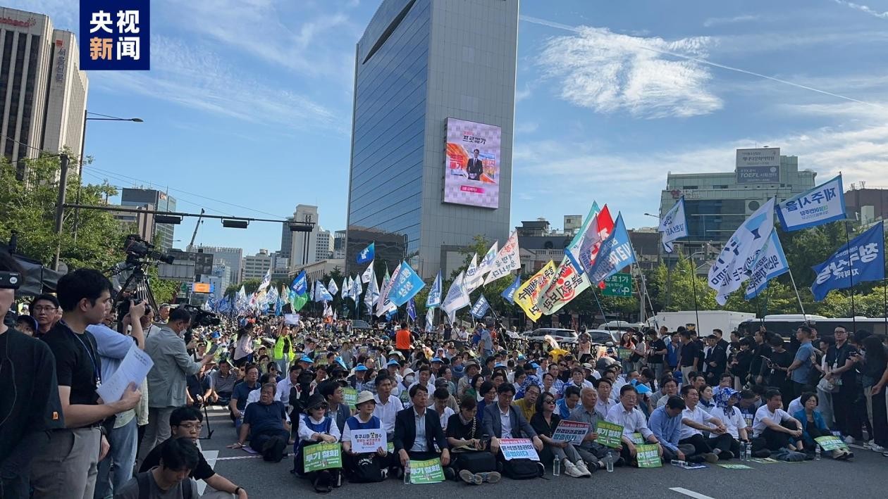 上萬韓國民眾在首爾市中心舉行集會 譴責日本核污染水排海