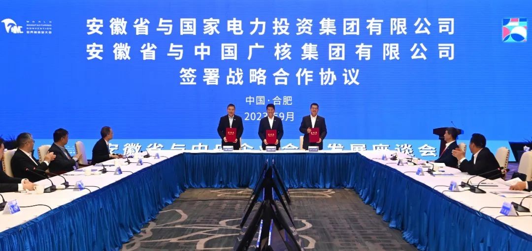 9月19日,安徽省與中央企業合作發展座談會在合肥舉行。在安徽省委書記韓俊,省委副書記、省長王清憲,國務院國資委黨委委員、副主任王宏志共同見證下,國家電投黨組成員、副總經理劉豐與安徽省委常委、副省長張紅文代表雙方簽署戰略合作協議。