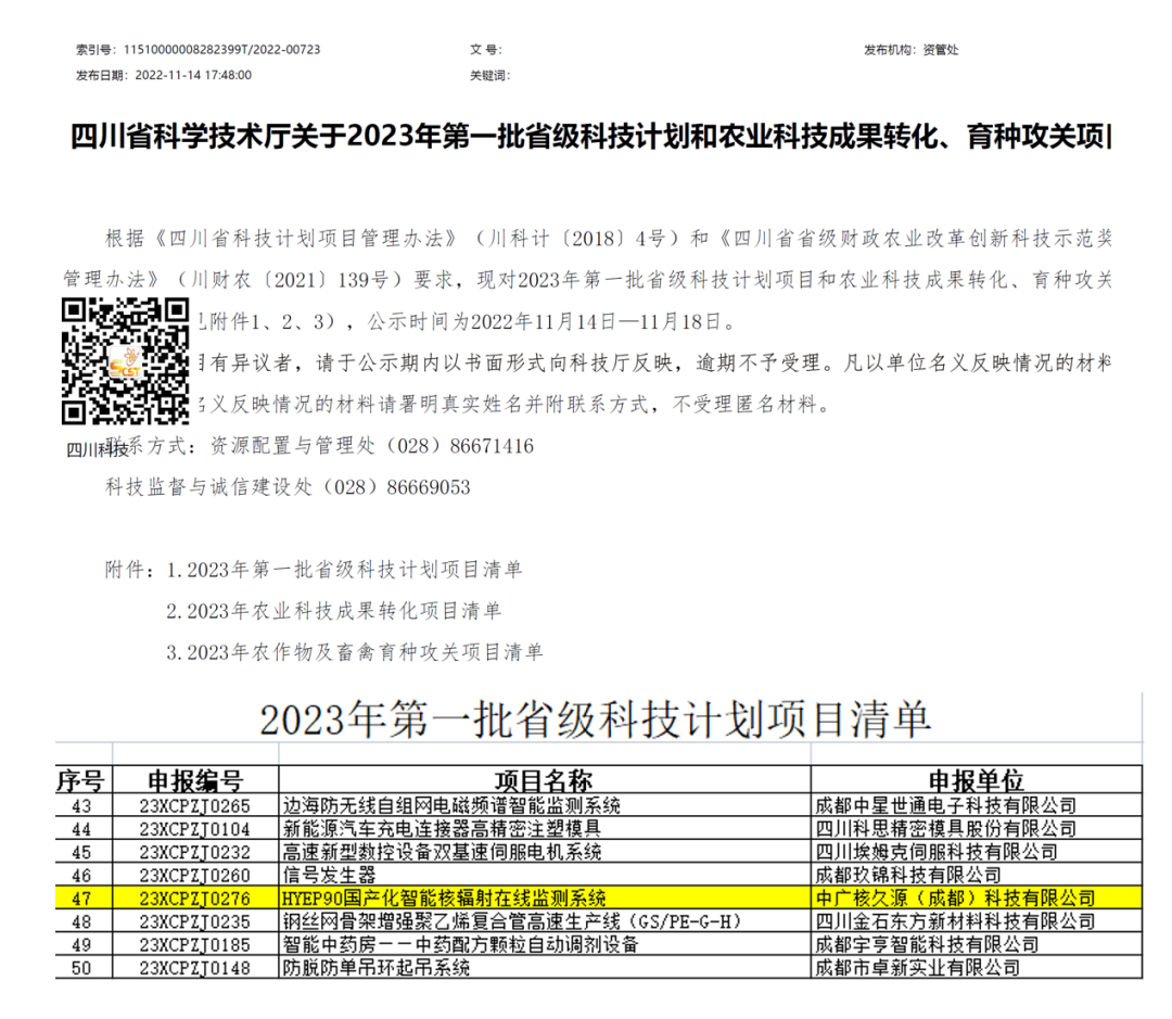 中廣核久源自主產品獲批四川省2023年重點創新產品認定
