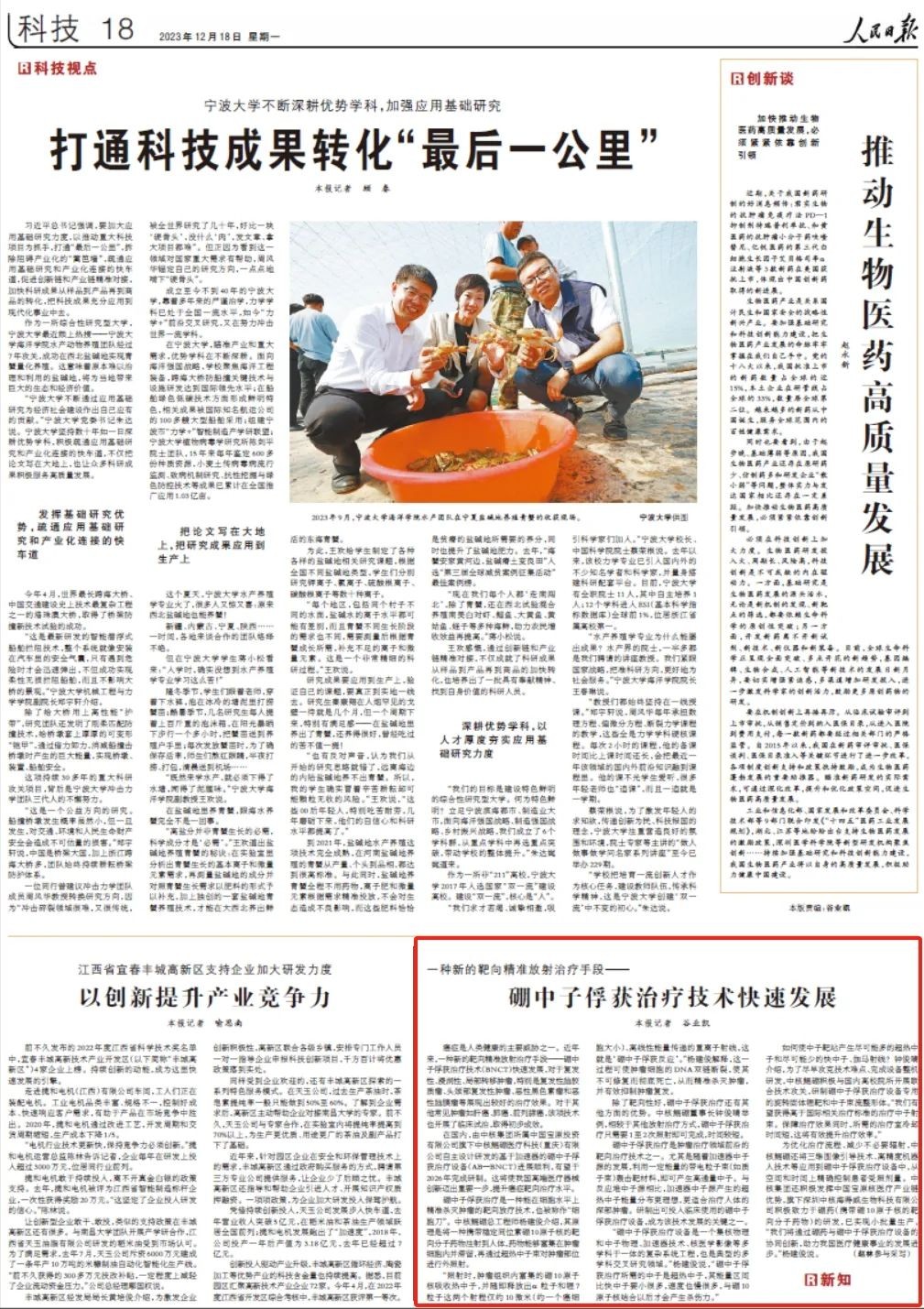 《人民日報》聚焦中國寶原:硼中子俘獲治療技術快速發展