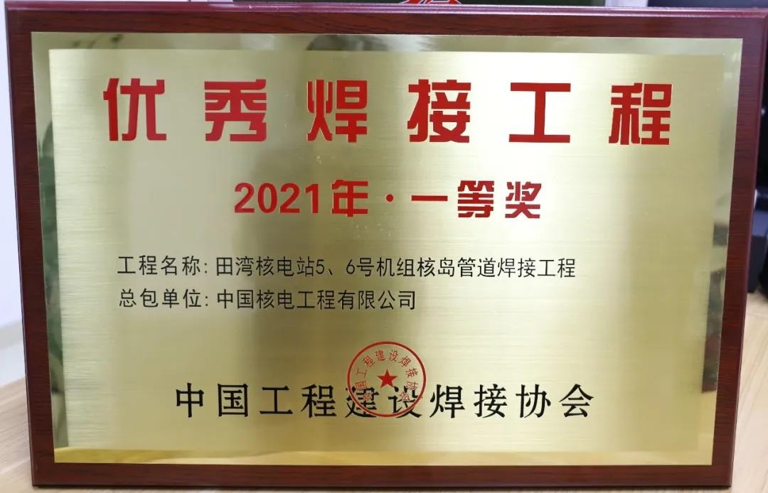 在中國工程建設焊接協會“2021年度強化全面焊接質量管理,創建優秀焊接工程”活動中,由中核工程總承包的田灣5、6號機組核島管道焊接工程榮獲2021年度優秀焊接工程一等獎。