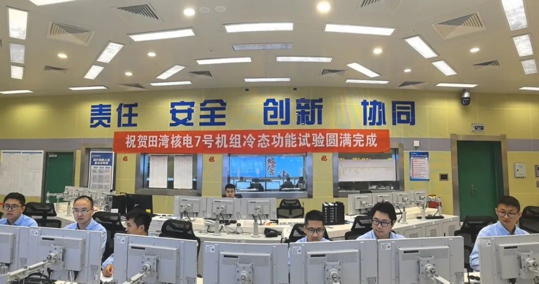 2025年2月10日,田灣核電站7號機組主控室全面施工完成,主儀控系統及配套設施同期投入使用,運行人員可入駐辦公,具備整體可用條件。