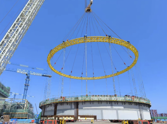 海陽核電3號核島鋼制安全殼筒體三環順利吊裝就位