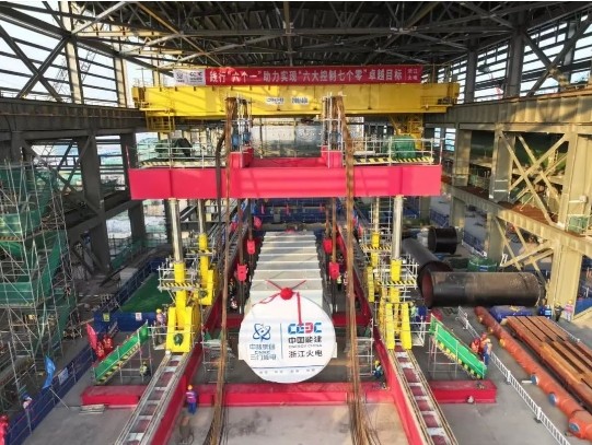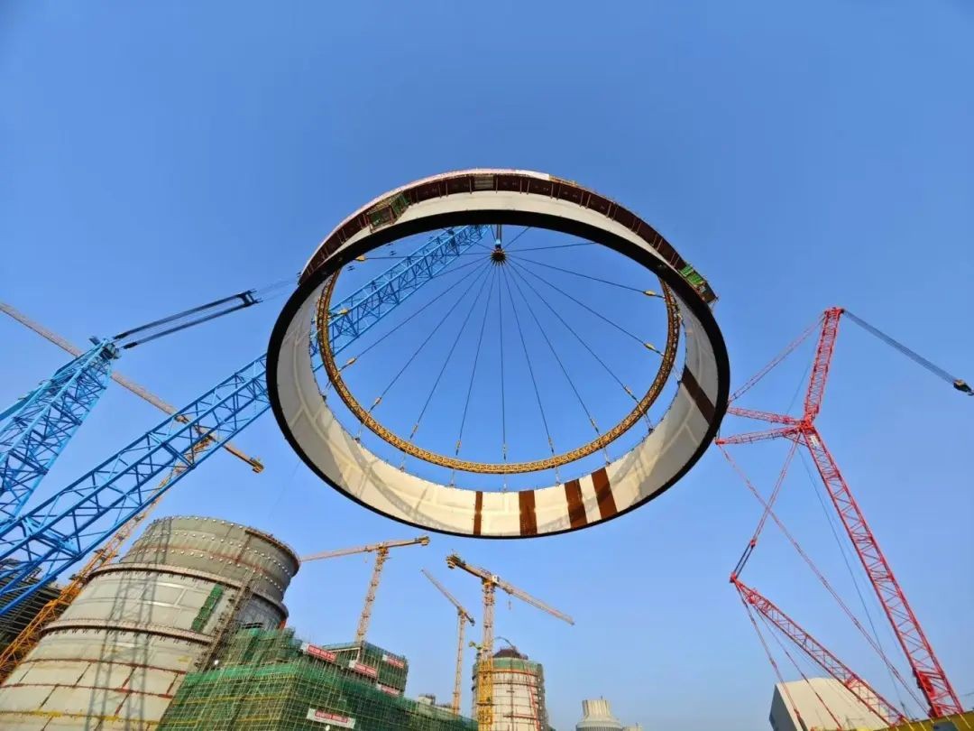 三門核電3號(hào)機(jī)組屏蔽廠房鋼穹頂?shù)跹b就位