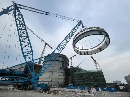 5月6日8時(shí)38分,三門核電4號(hào)機(jī)組核島屏蔽廠房墻體鋼板混凝土結(jié)構(gòu)(SC)第11-12層模塊順利吊裝就位,為4號(hào)機(jī)組安全殼頂封頭就位里程碑節(jié)點(diǎn)實(shí)現(xiàn)打下了堅(jiān)實(shí)基礎(chǔ)。本次吊裝的SC11-12層模塊充分秉承應(yīng)模盡模理念,進(jìn)一步提升了屏蔽廠房建造效率。該模塊由兩層24個(gè)子模塊拼裝而成,整體呈圓筒型,外徑約40米,高約7米,吊裝重量超過600噸。三門核電建設(shè)團(tuán)隊(duì)整體協(xié)同,全面貫徹中核集團(tuán)六大控制七個(gè)零高質(zhì)量精細(xì)化項(xiàng)目管理要求,在二期工程建設(shè)項(xiàng)目指揮中心(PC...