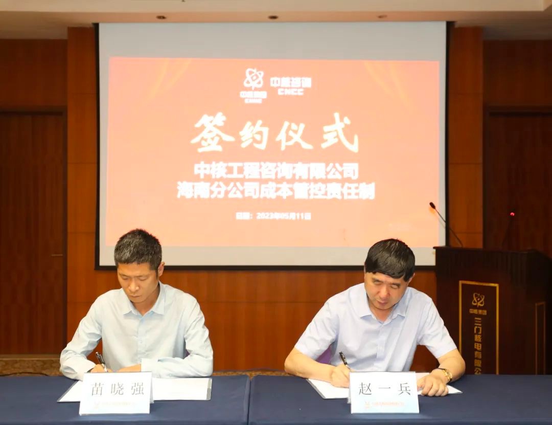 5月11日,中核咨詢在浙江三門核電現場組織召開海南分公司成本管控責任制協議書簽約儀式,公司黨委書記、董事長趙一兵出席簽約儀式,代表公司與海南分公司完成簽約,副總工程師陳建民主持簽約儀式。