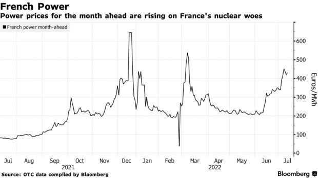 本周襲擊歐洲的炎熱天氣將減少法國核反應堆群的電力輸出,在歐洲大陸經歷幾十年來最嚴重的能源緊縮之際,有可能導致電價上漲。