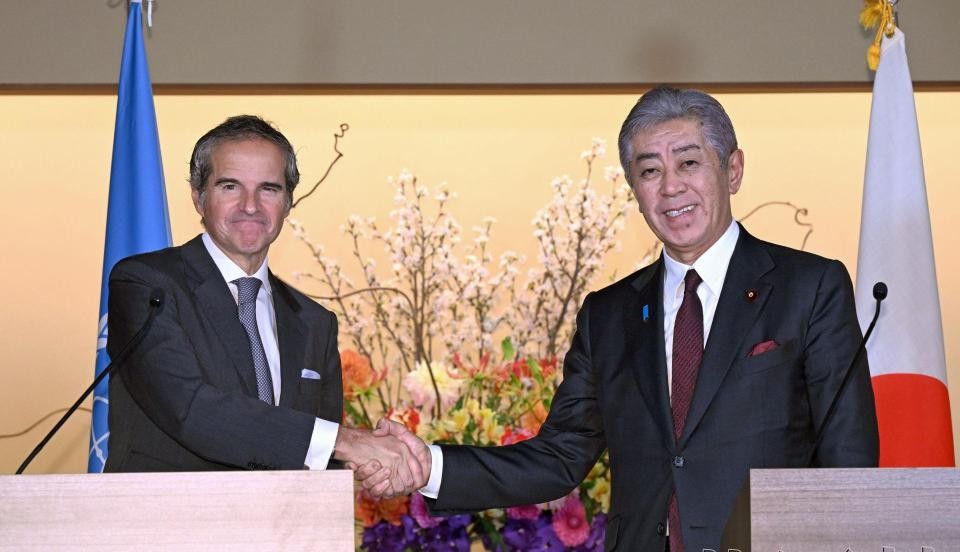 日本外相巖屋毅18日在東京與國際原子能機構(IAEA)總干事格羅西舉行會談,圍繞東京電力福島第一核電站處理水排海展開磋商。