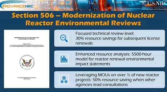 美國核監管委員會(NRC)為落實2024 年《加速部署多用途先進清潔能源核能法案》(ADVANCE)和2025年第14300號行政令《改革核監管委員會》等法規政令要求,實施系列舉措加速推進美國核安全監管現代化,包括提高反應堆許可效率、改進環境審查流程、降低先進反應堆許可費用、加強人員配置和能力建設、優化監督檢查流程等。截至目前NRC已取得階段性進展,并按照ADVANCE法案要求向國會提交了11份改革進展報告,下文分類匯總了各項里程碑任務,詳細清單...