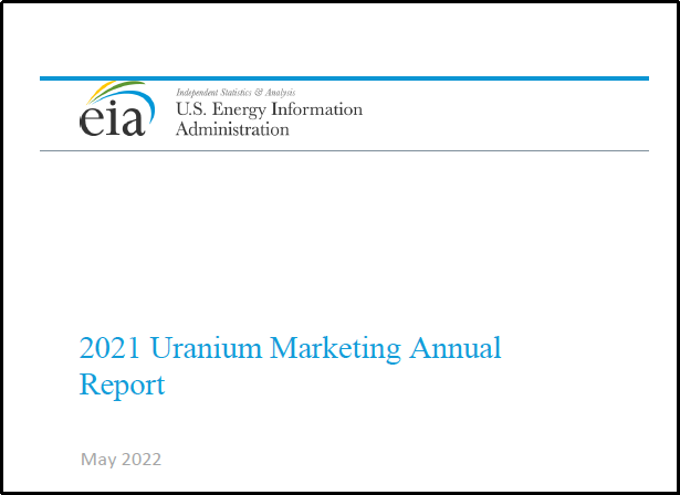 2022年5月26日,美國能源信息管理局發布《2021年美國鈾市場年度報告》,對2021年美國鈾市場采購數量和價格、新簽署的采購合同、進出口數量和商業庫存等信息進行了回顧。