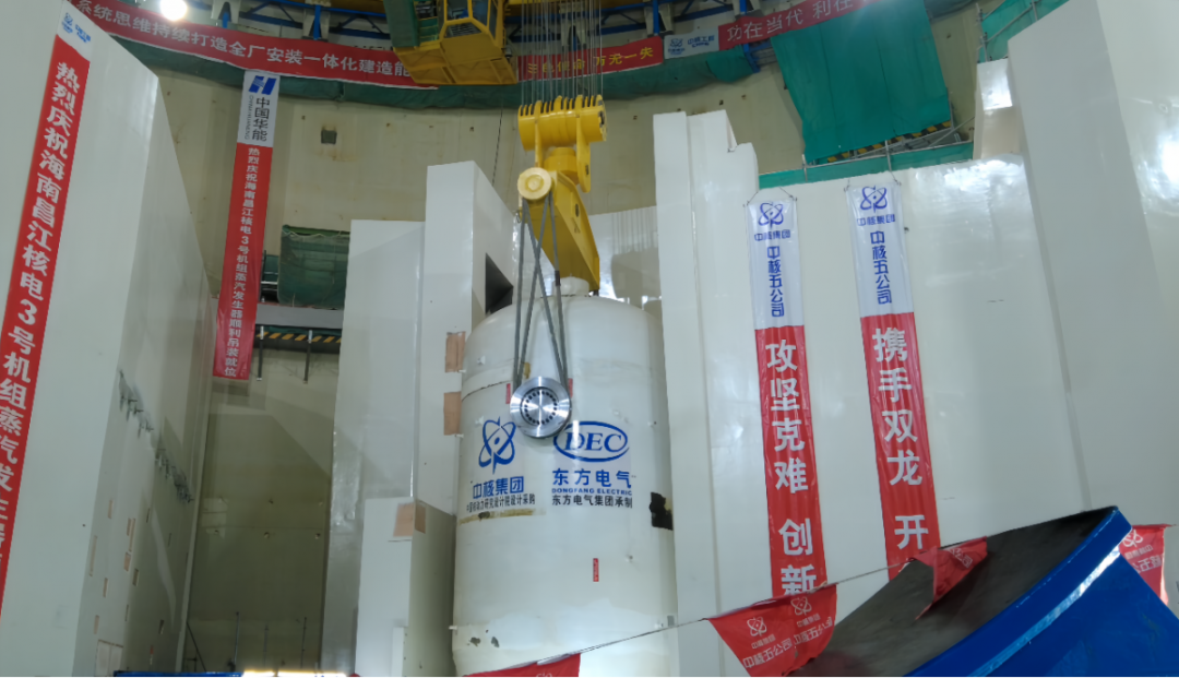 華能海南昌江核電3號機組首臺蒸汽發生器順利吊裝