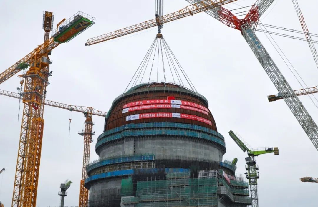 昌江核電“華龍一號”4號機組內穹頂吊裝就位