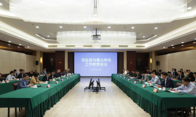10月16日,海鹽縣與秦山核電再次召開工作聯席會議。雙方就共同關注和支持的事項作了進一步交流和探討,并簽署了聯席會議備忘錄。