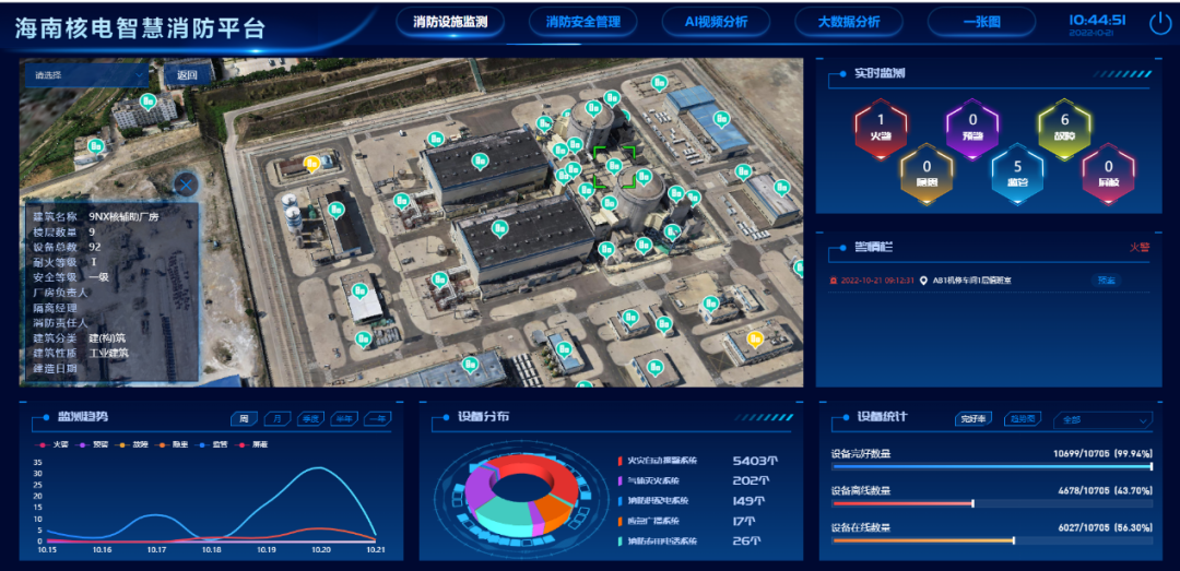 海南核電為提升核電廠消防安全管理水平,積極推動智慧消防系統平臺的建設,應用云計算、大數據、物聯網、移動互聯網、區塊鏈等信息技術,全面推進核電消防數字化轉型進程。經歷了6個月的試運行,2022年11月9日,中核集團數字化轉型示范項目--海南核電智慧消防系統正式投用!實現“傳統消防”向“智慧消防”的轉變。