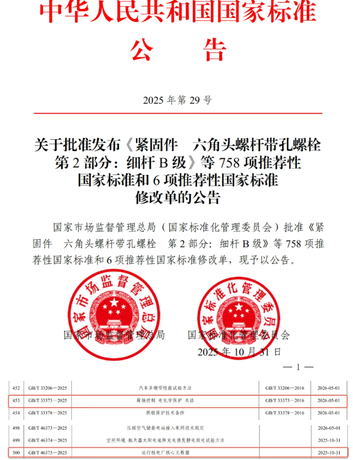 近日,國家標準化管理委員會正式發布2025年第29號國家標準公告,秦山核電主導編制的兩項國家標準——GB/T46375-2025《運行核電廠核心元數據》 與GB/T33373-2025《腐蝕控制電化學保護術語》 成功獲批發布。這是秦山核電在核電數字化與材料腐蝕領域取得的重要標準化成果,標志著公司在標準引領行業發展的道路上邁出堅實步伐。《運行核電廠核心元數據》國家標準的發布,填補了我國在運核電機組數字化轉型領域核心數據標準的空白。隨著我國核電...