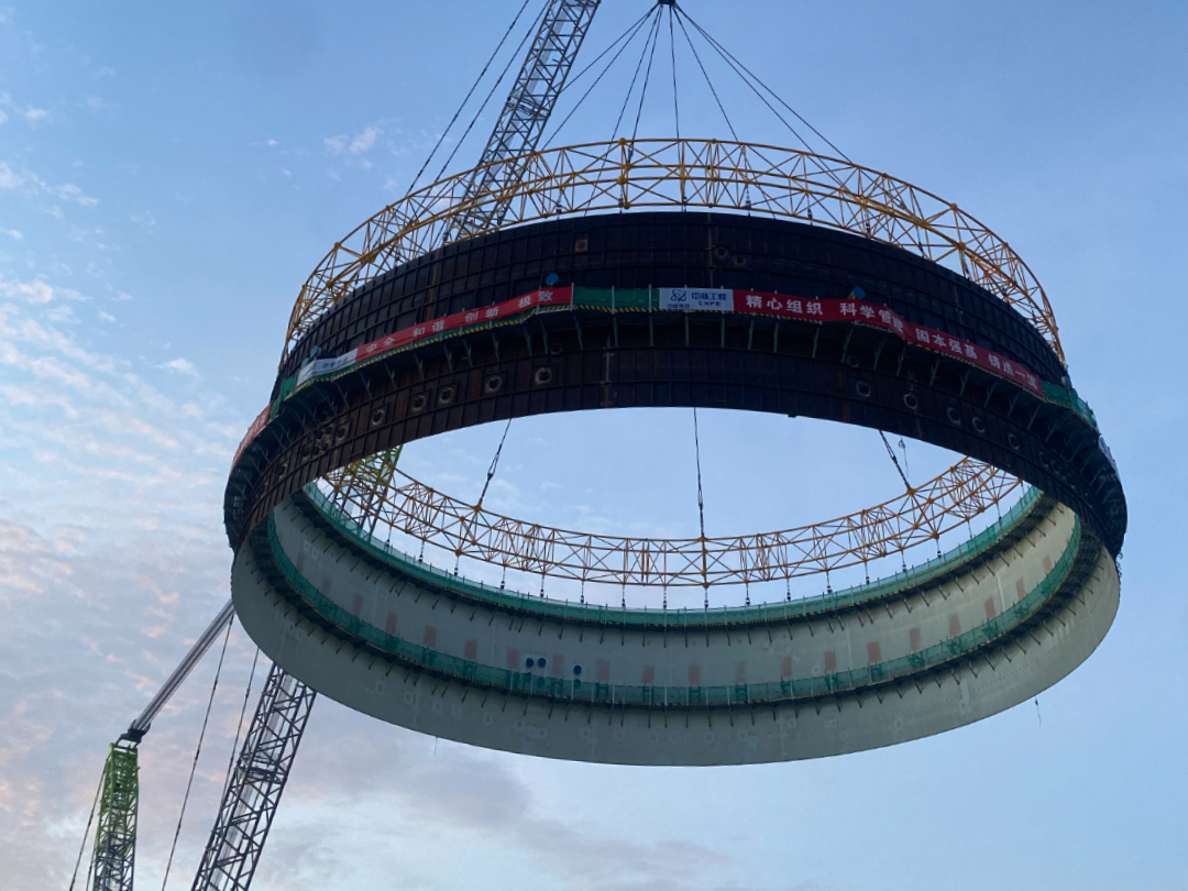 中核集團田灣核電7號機組穹頂球帶成功吊裝
