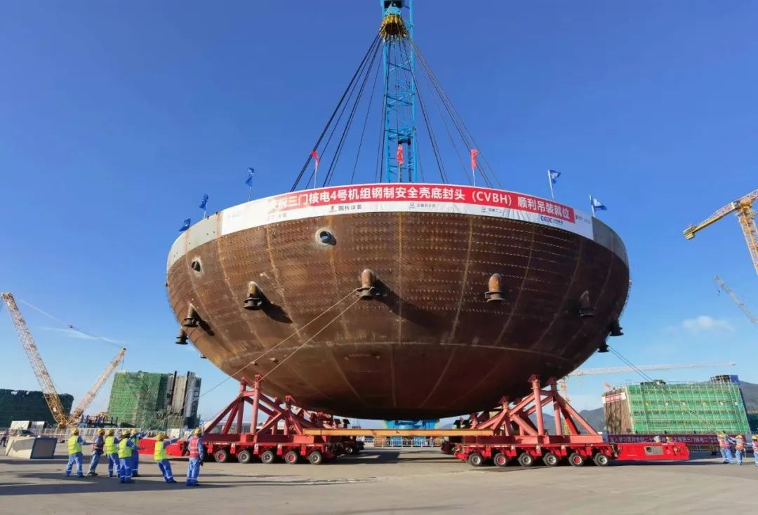 三門核電二期工程4號機組核島鋼制安全殼底封頭順利吊裝就位