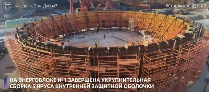 Rosatom完成埃爾達巴核電站1號機組內(nèi)部安全殼第五層環(huán)段整體吊裝