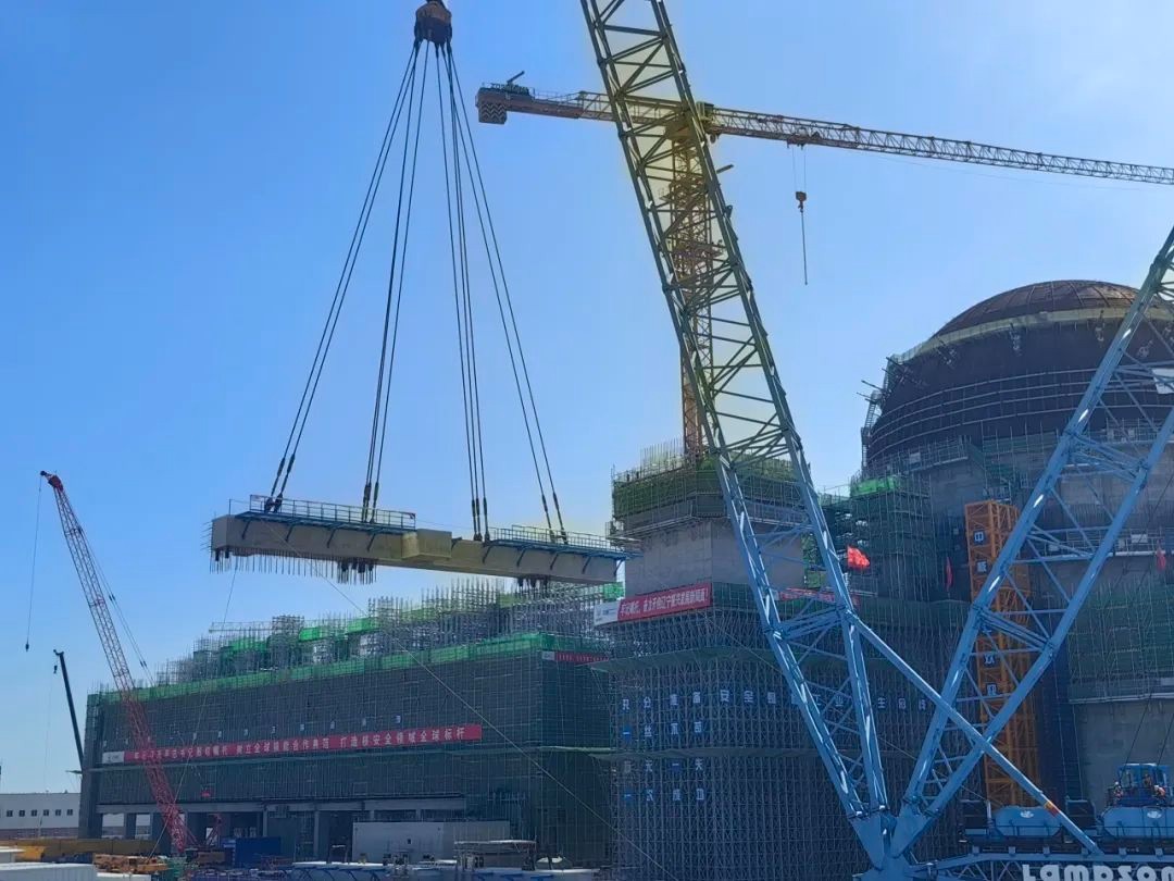 徐大堡核電3號(hào)機(jī)組運(yùn)輸橋架預(yù)制模塊梁吊裝成功
