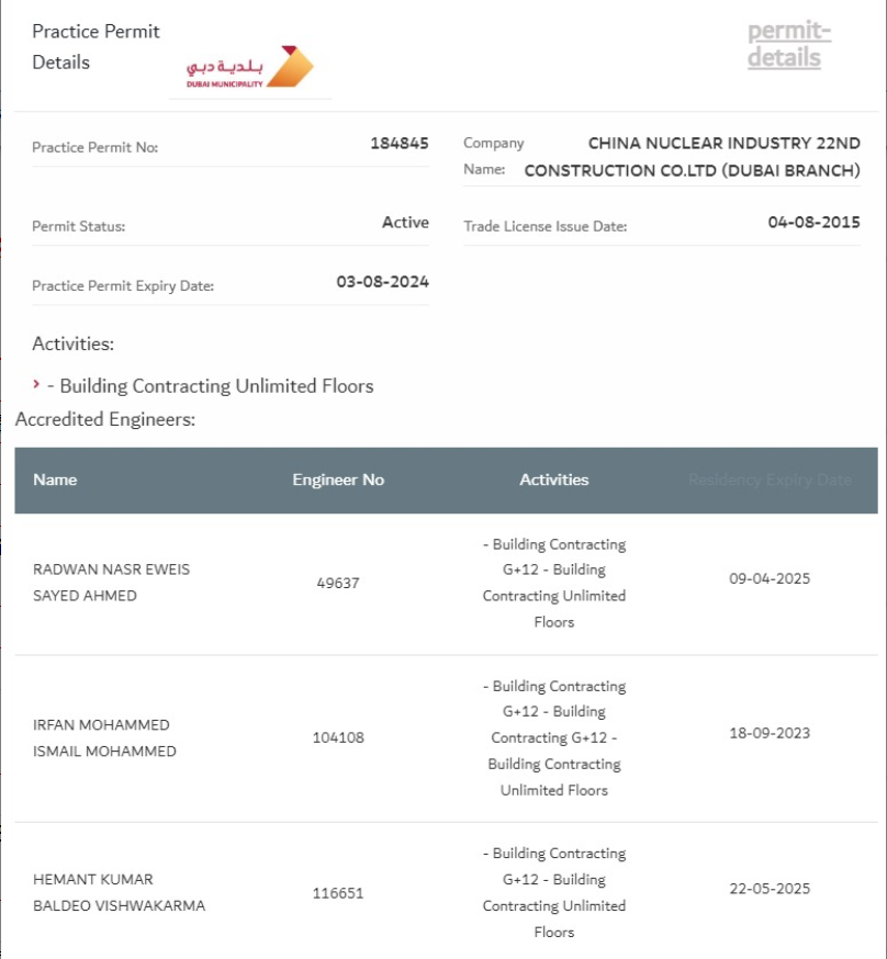 近日,中核二二取得迪拜市政廳頒發的房建承包無限級資質,這是中核二二繼取得阿布扎比房建承包、鋼結構承包兩項特級資質后,在阿聯酋施工資質領域的又一大進步。