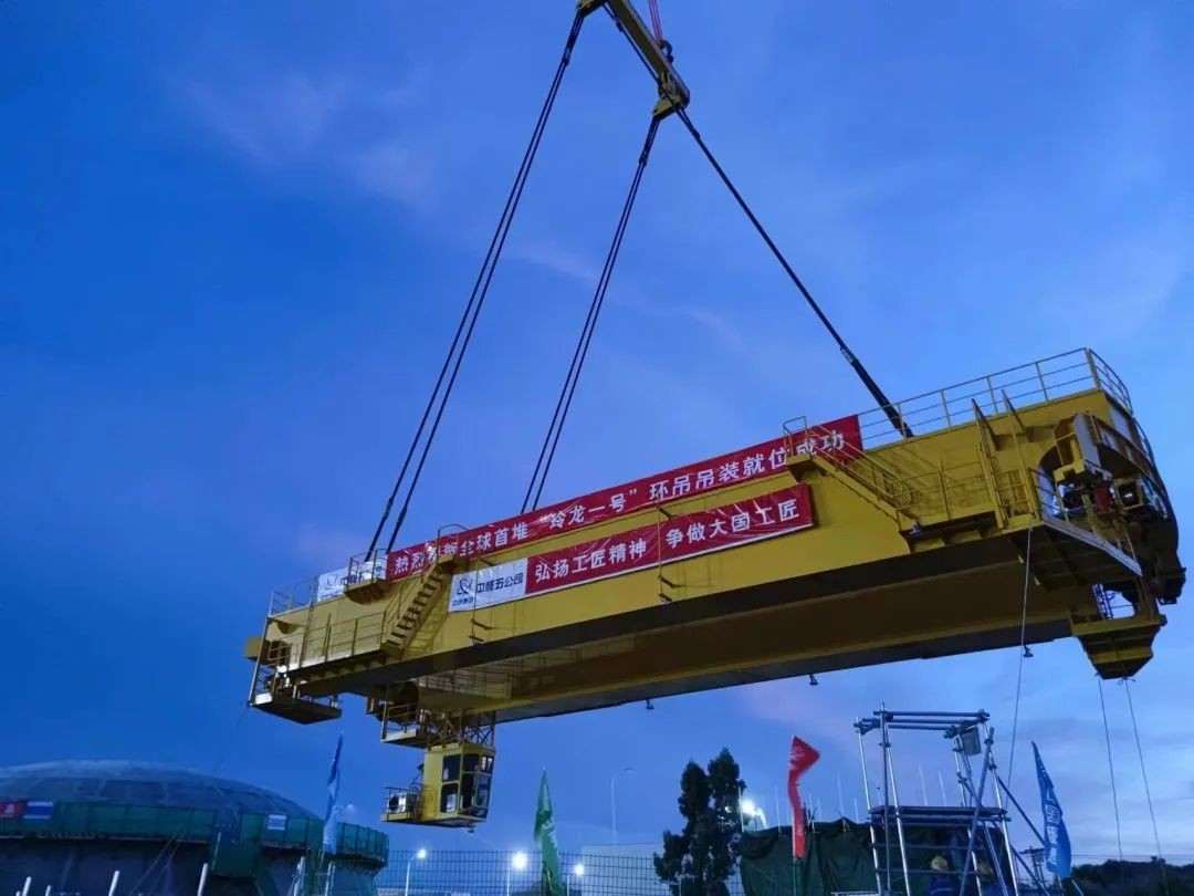 玲龍一號全球首堆環吊主梁吊裝就位