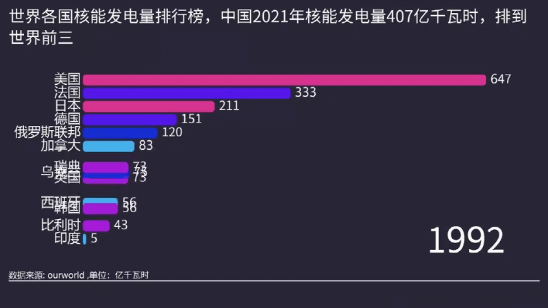 世界各國核能發電量排行榜,中國2021年核能發電量407億千瓦時,排到世界前三!