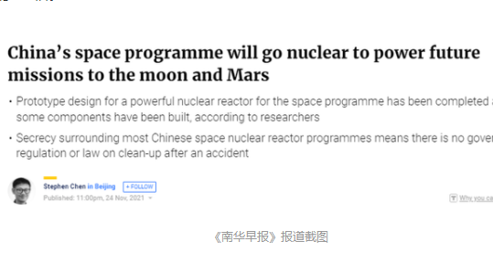 港媒:中國未來月球和火星任務將使用核能,動力將是美類似計劃100倍